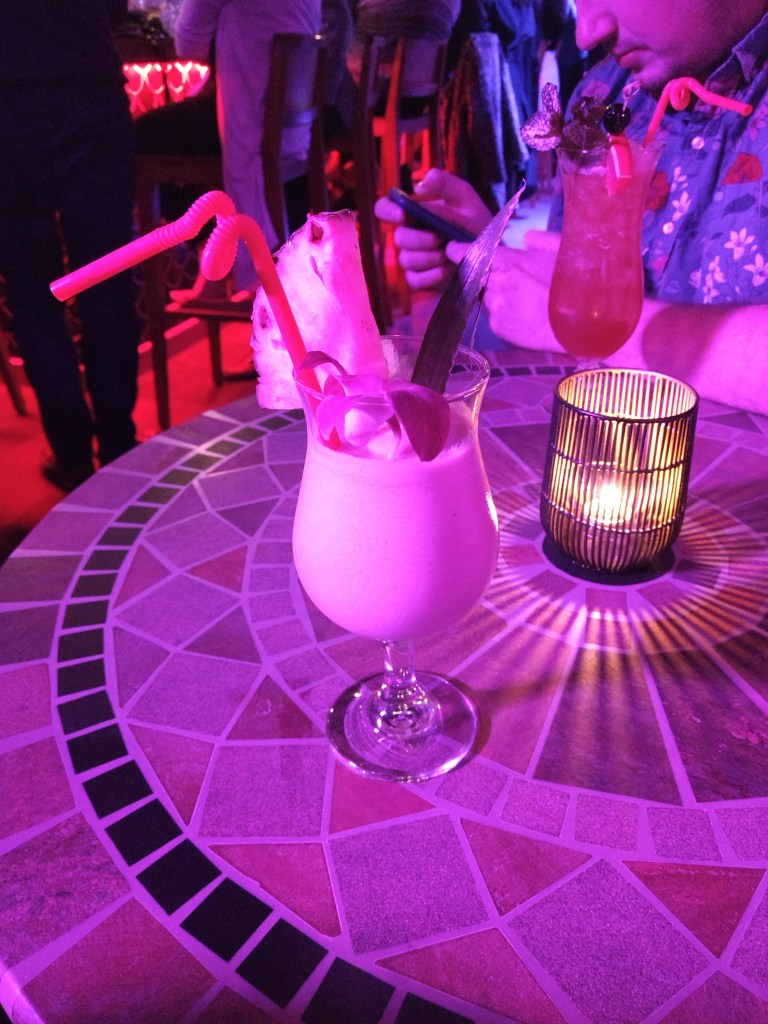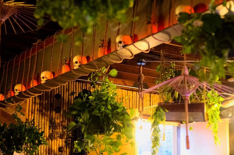 The pothos wonderland had exploded from Sabai and into this speakeasy. From bamboo and fishing nets to palms and pineapples, The Jungle Room is the epitome of tiki, with an extra spicy twist. With deep violet mood lighting, sinister drum beats, and a few hidden eerie gems (like a ragged French flag on the boat behind the bar and human teeth as wall decor), creepy tiki was the dominant theme here. You really do feel an element of danger in the decor, which gives the whole place an air of mystery and exclusivity. I wouldn’t have been surprised to see a little fog creeping along the floor.